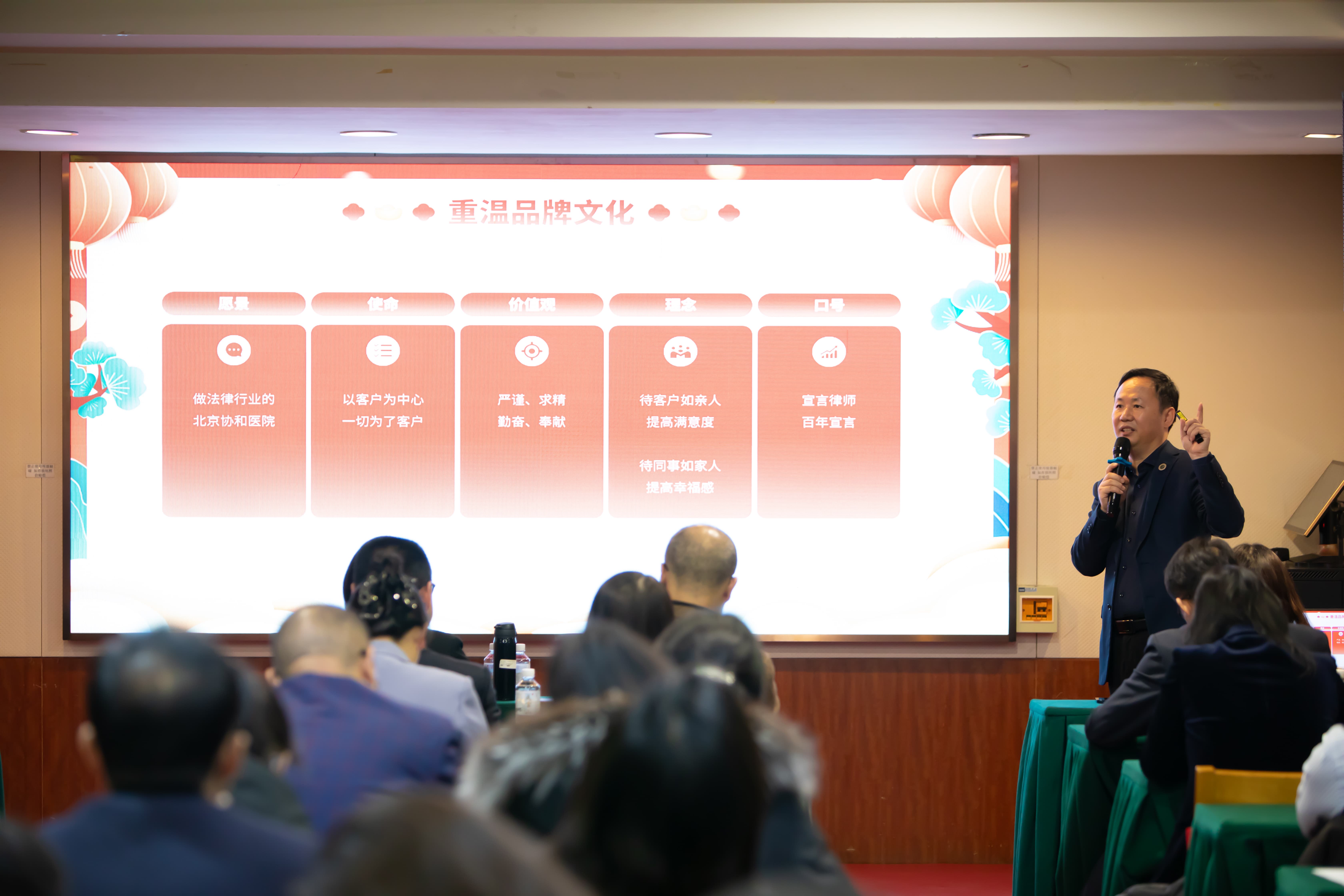 紧接着,宣言律所叶勇主任登台向全体家人作年度工作报告。他带领大家回顾了宣言律所集体和个人新荣誉、系列活动、部门大事记、国际交流合作、公益活动开展、宣言律所各项数据变化及分析、专业部门的完善方面等全面总结了律所2025年度的各项工作成果。同时他为律所同仁讲述年度发展规划,他表示未来一年将继续加强党建引领、提升律所服务能力、加大团队建设力度、提高办案专业水平、增加部门业务收入,并带领大家重温了宣言律所的品牌文化理念。
